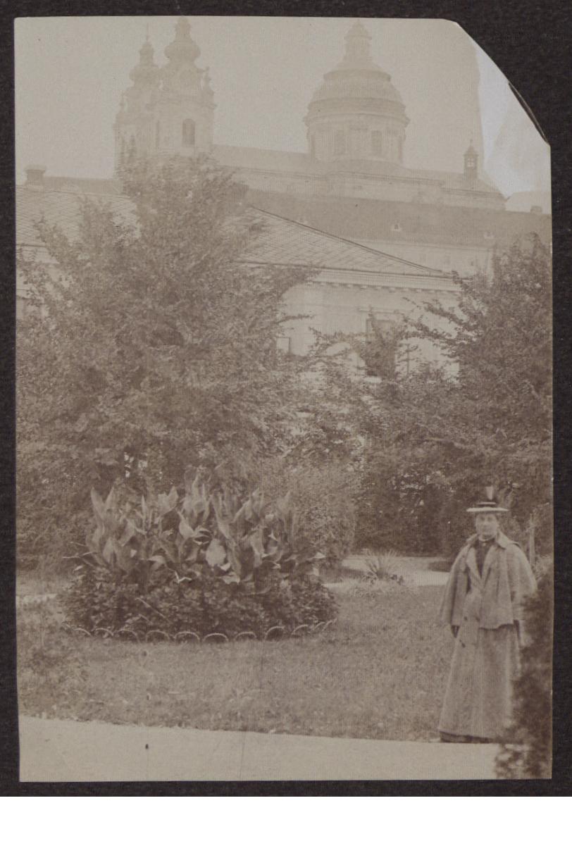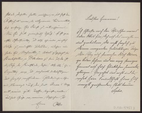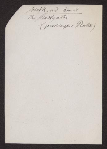 Transkription s. D 102-5499, zum Inhalt des Schreibens s. D 102-5503 Zwei Blätter jeweils beidseitig beschrieben, beiliegend ein s/w Foto: Sophie Schmalz (?), auf der Rückseite handschr. "Melk a.d. Donau. Im Stadtgarten (zerschlagene Platte)"