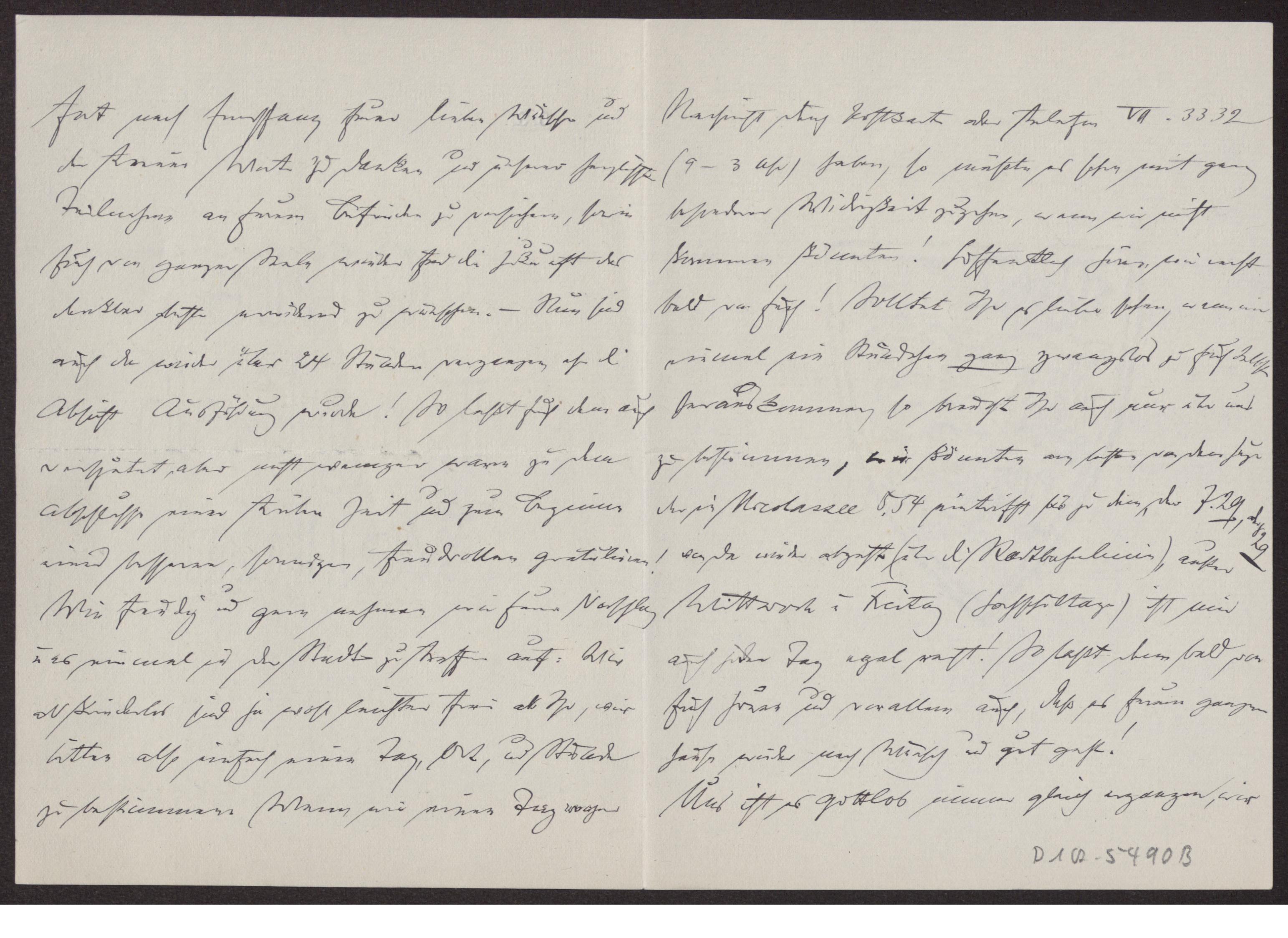 Transkription s. D 102-5496, zum Inhalt des Schreibens s. D 102-5503 Blatt beidseitig beschrieben.