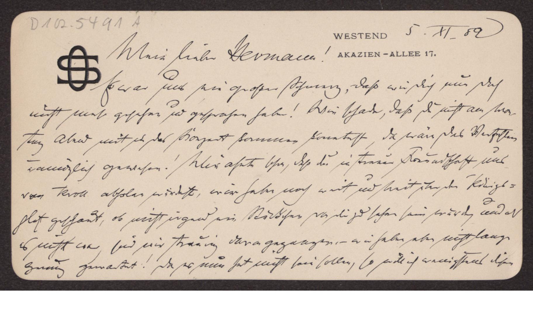 Transkription s. D 102-5496, zum Inhalt des Schreibens s. D 102-5503 Blatt beidseitig beschrieben.