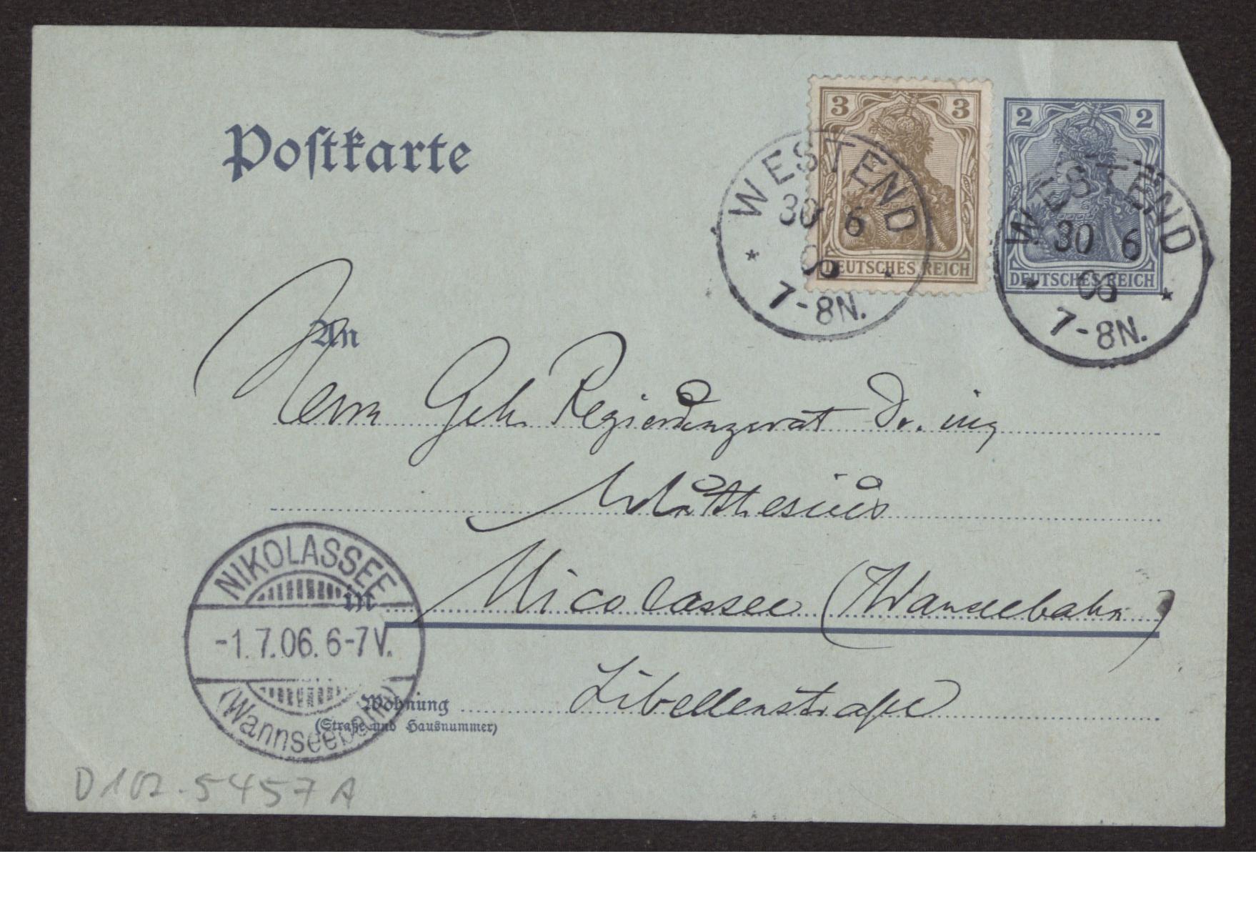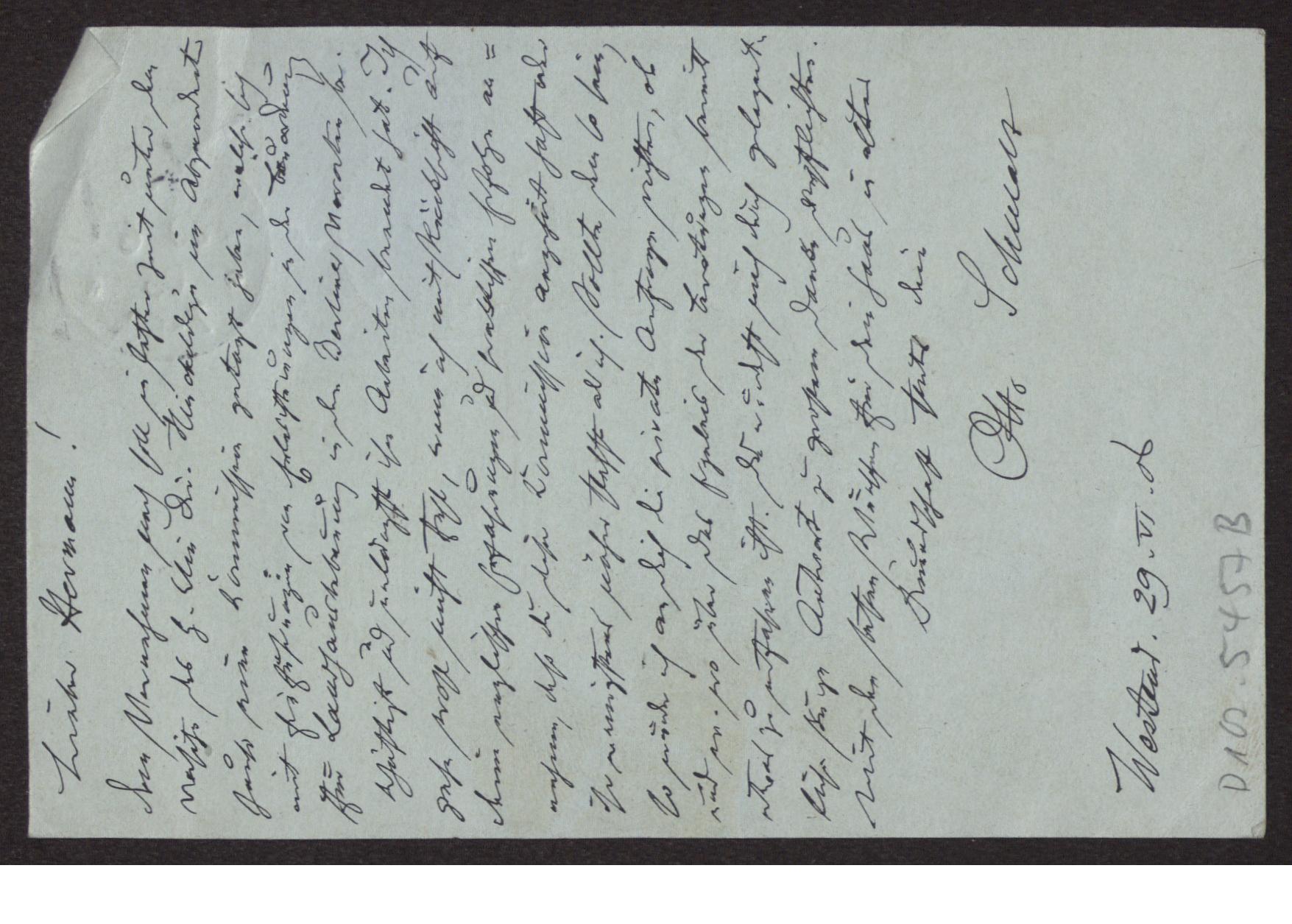 Transkription s. D 102-5495, zum Inhalt des Schreibens s. D 102-5503 Karte beidseitig beschrieben.
