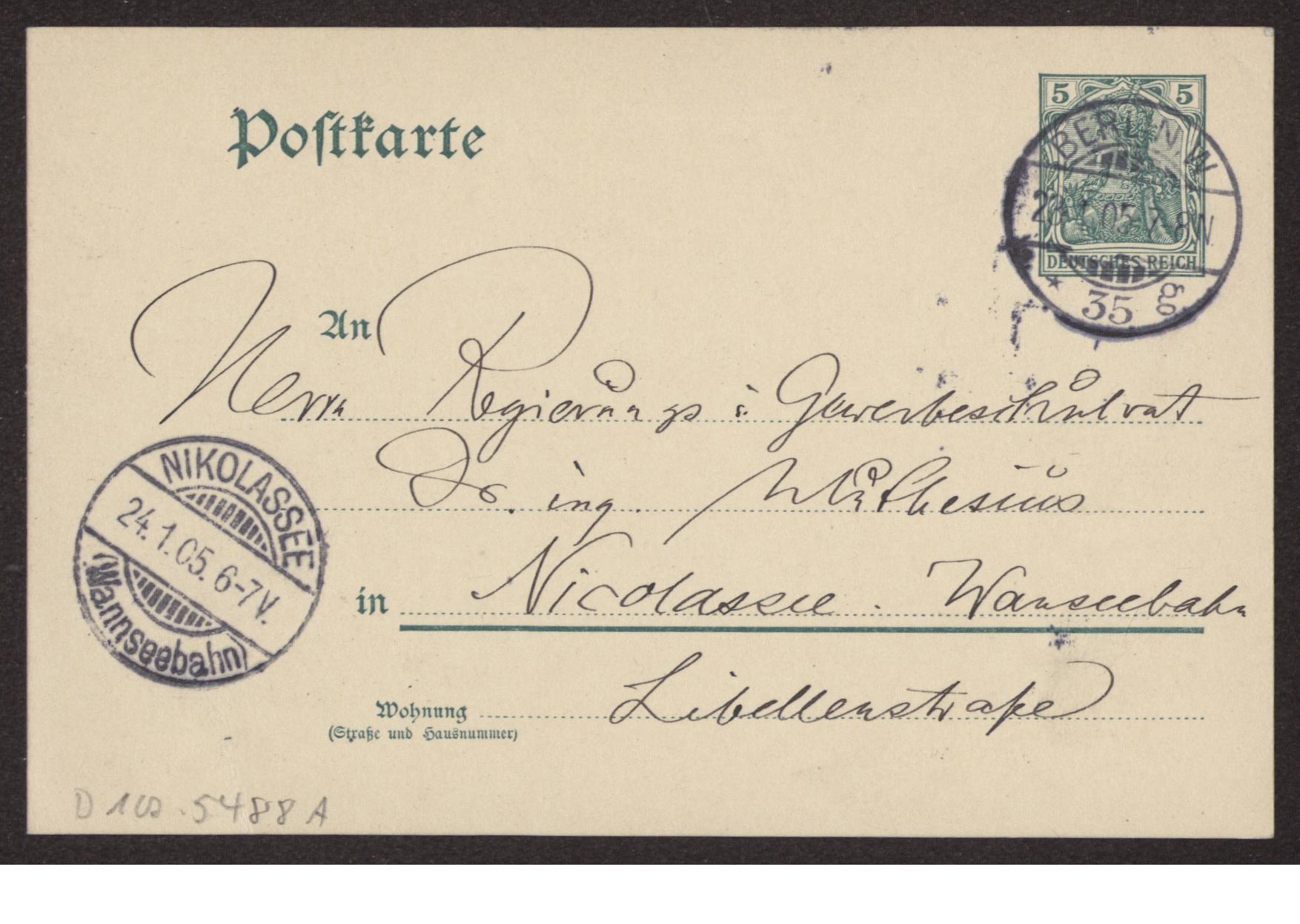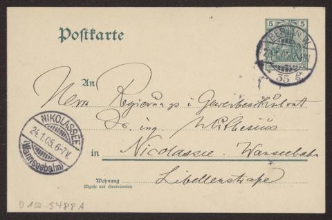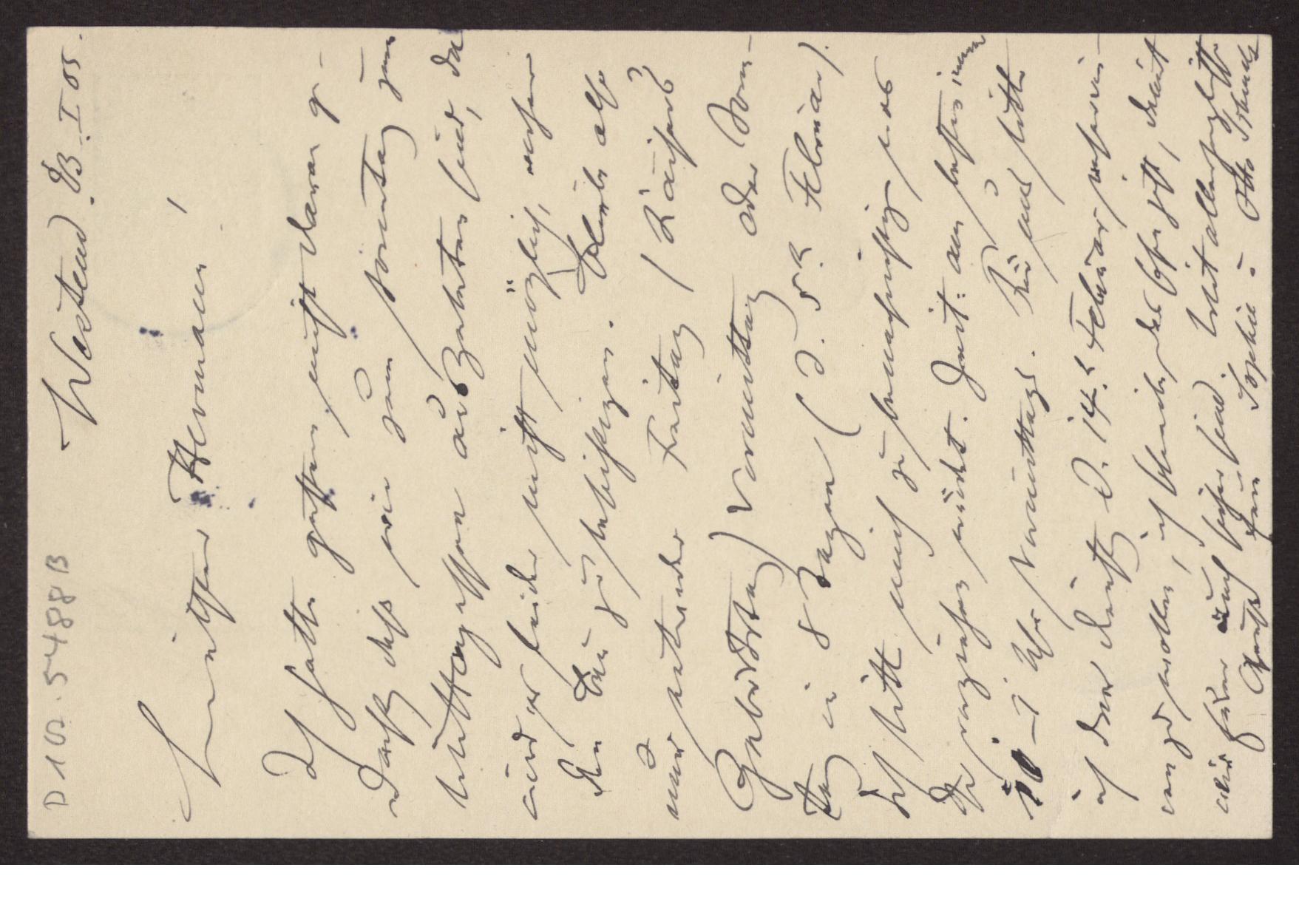 Transkription s. D 102-5496, zum Inhalt des Schreibens s. D 102-5503 Karte beidseitig beschrieben.