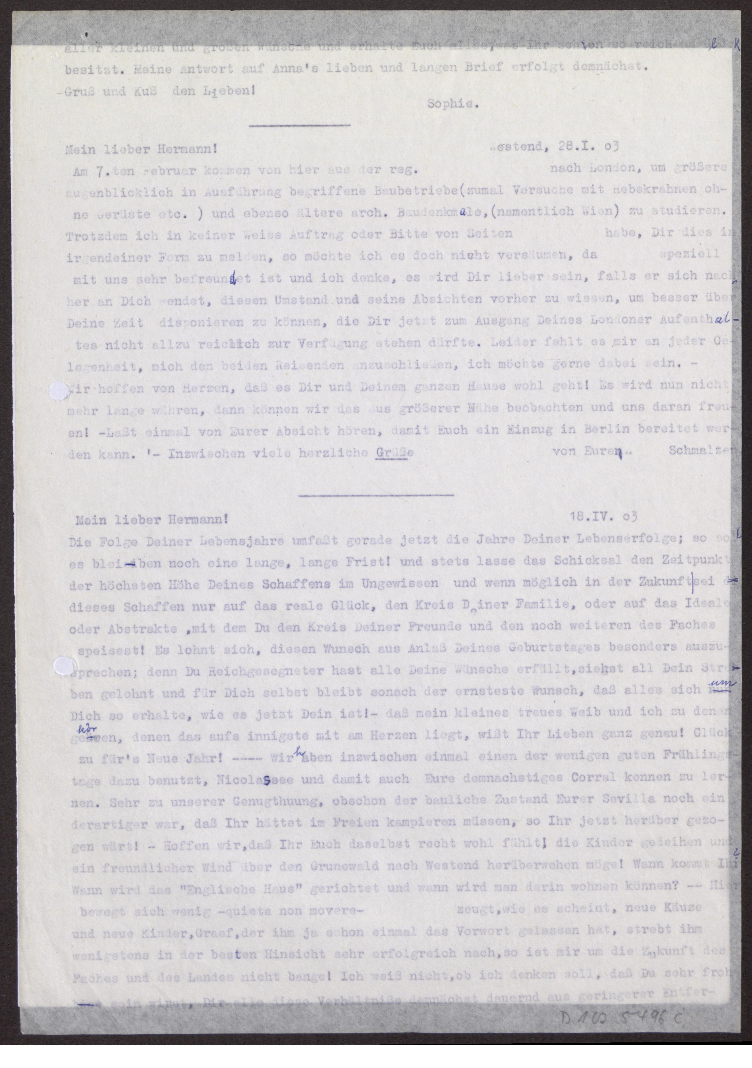 s. Einzelbriefe und Karten Fünf Blätter einseitig beschrieben.