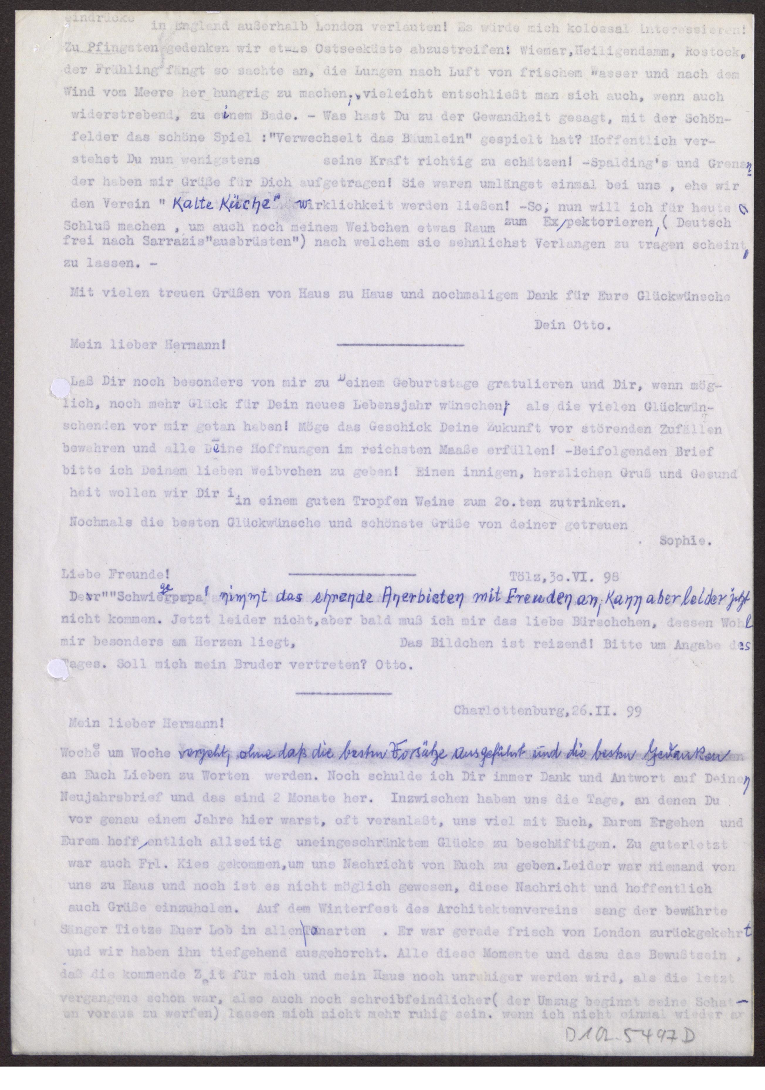 s. Einzelbriefe und Karten Sieben Blätter einseitig beschrieben.