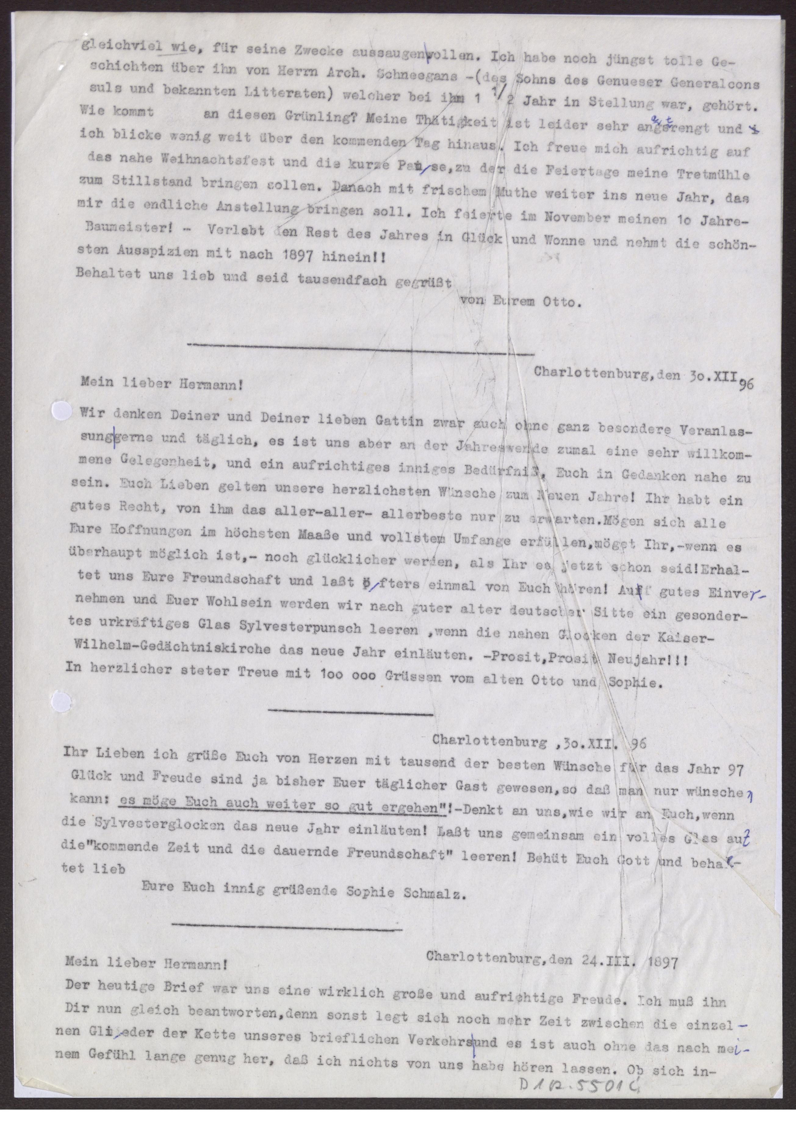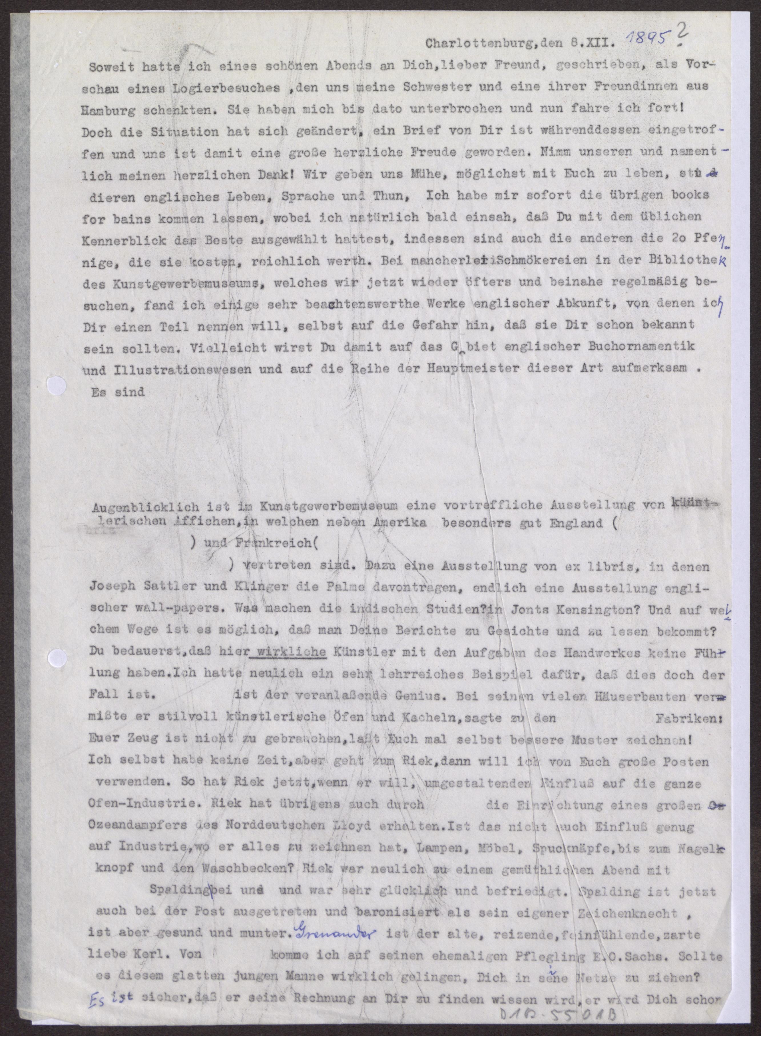 s. Einzelbriefe und Karten, eine Transkription 8.12.1895 ist keinem vorhandenen Brief zuzuordnen Fünf Blätter einseitig beschrieben.