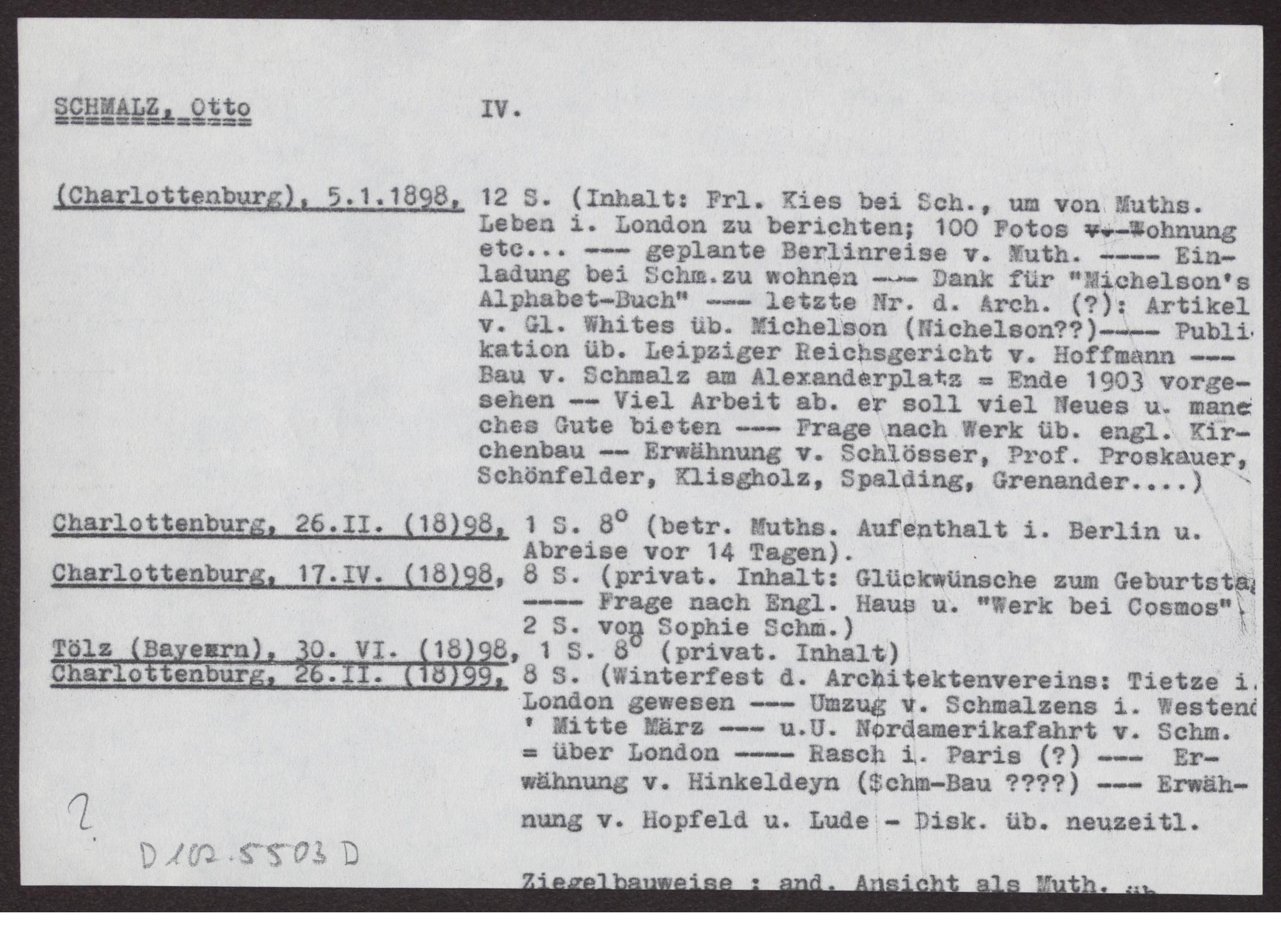 Teilübersetzungen der Briefe zw. Sophie und Otto Schmalz und Hermann Muthesius (Inhalte der Schreiben.)