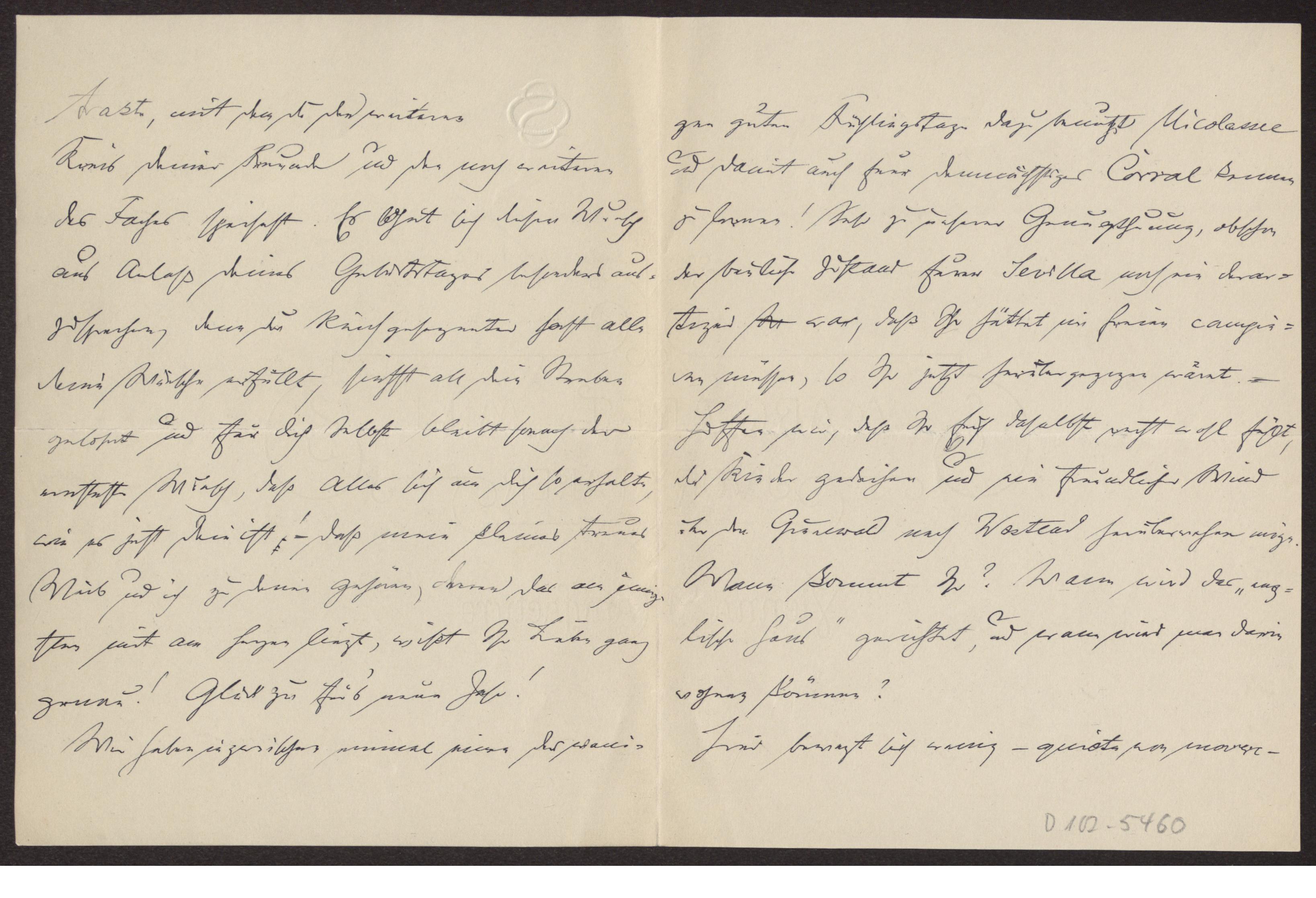 Transkription s. D 102-5496, zum Inhalt des Schreibens s. D 102-5503 Blatt beidseitig beschrieben.