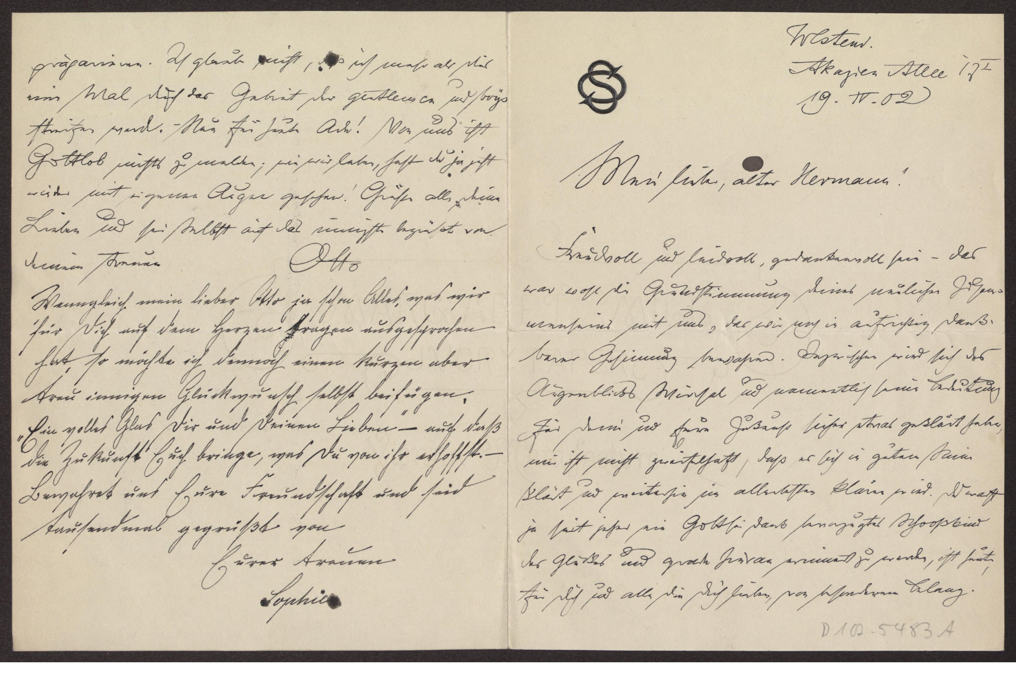 Transkription s. D 102-5496, zum Inhalt des Schreibens s. D 102-5503 Blatt beidseitig beschrieben.