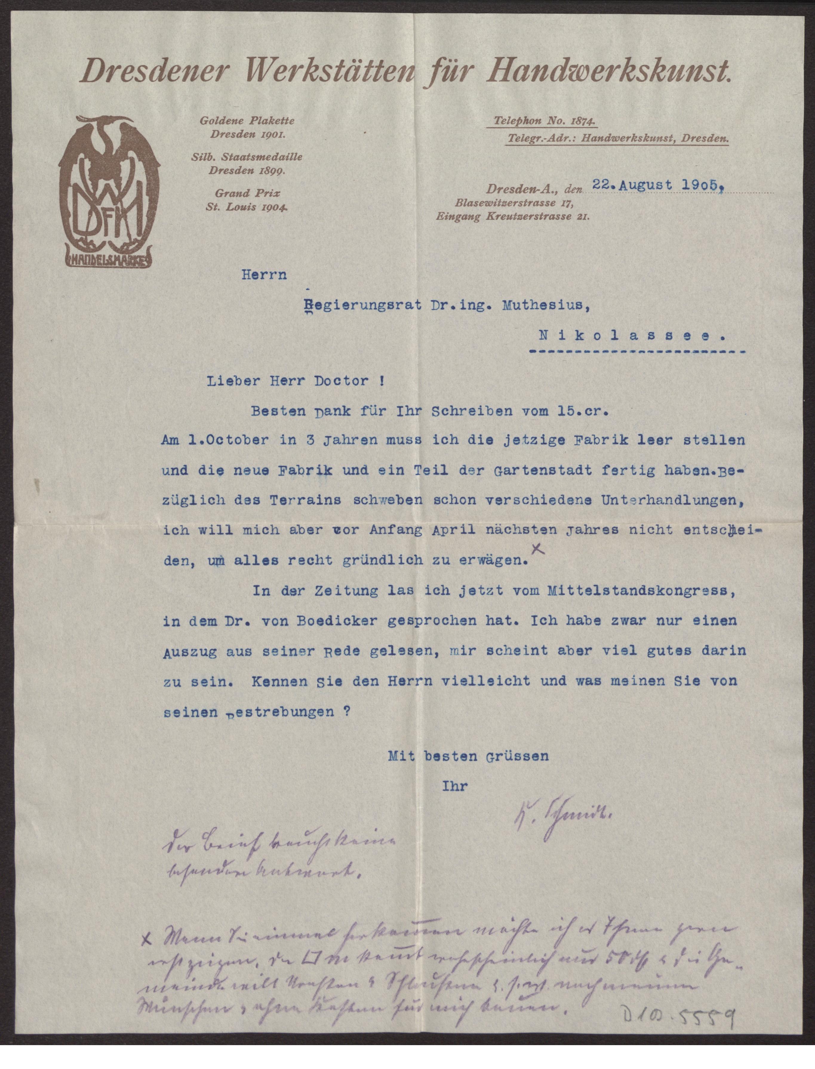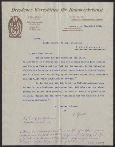Schreiben an Hermann Muthesius (Brief)
