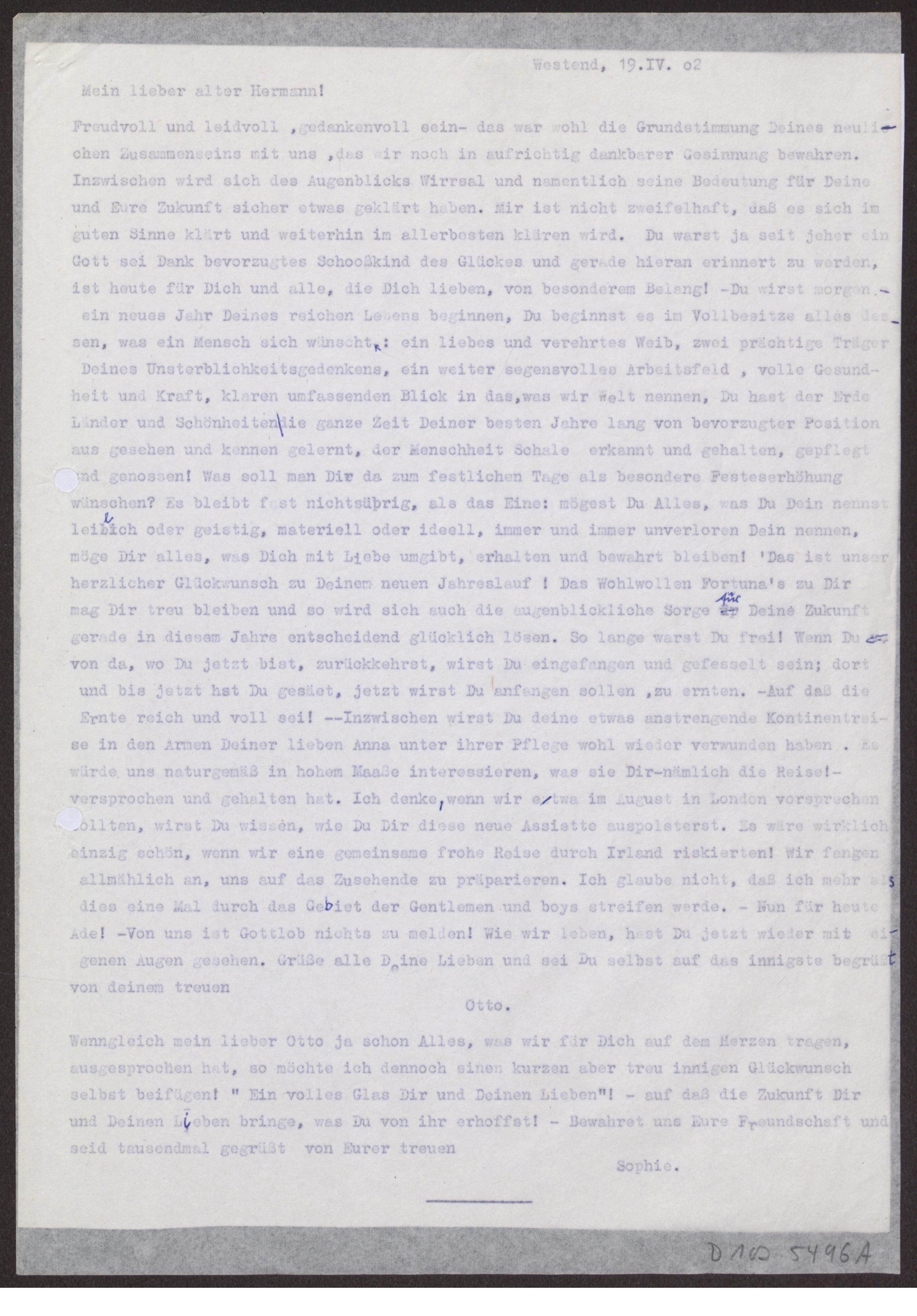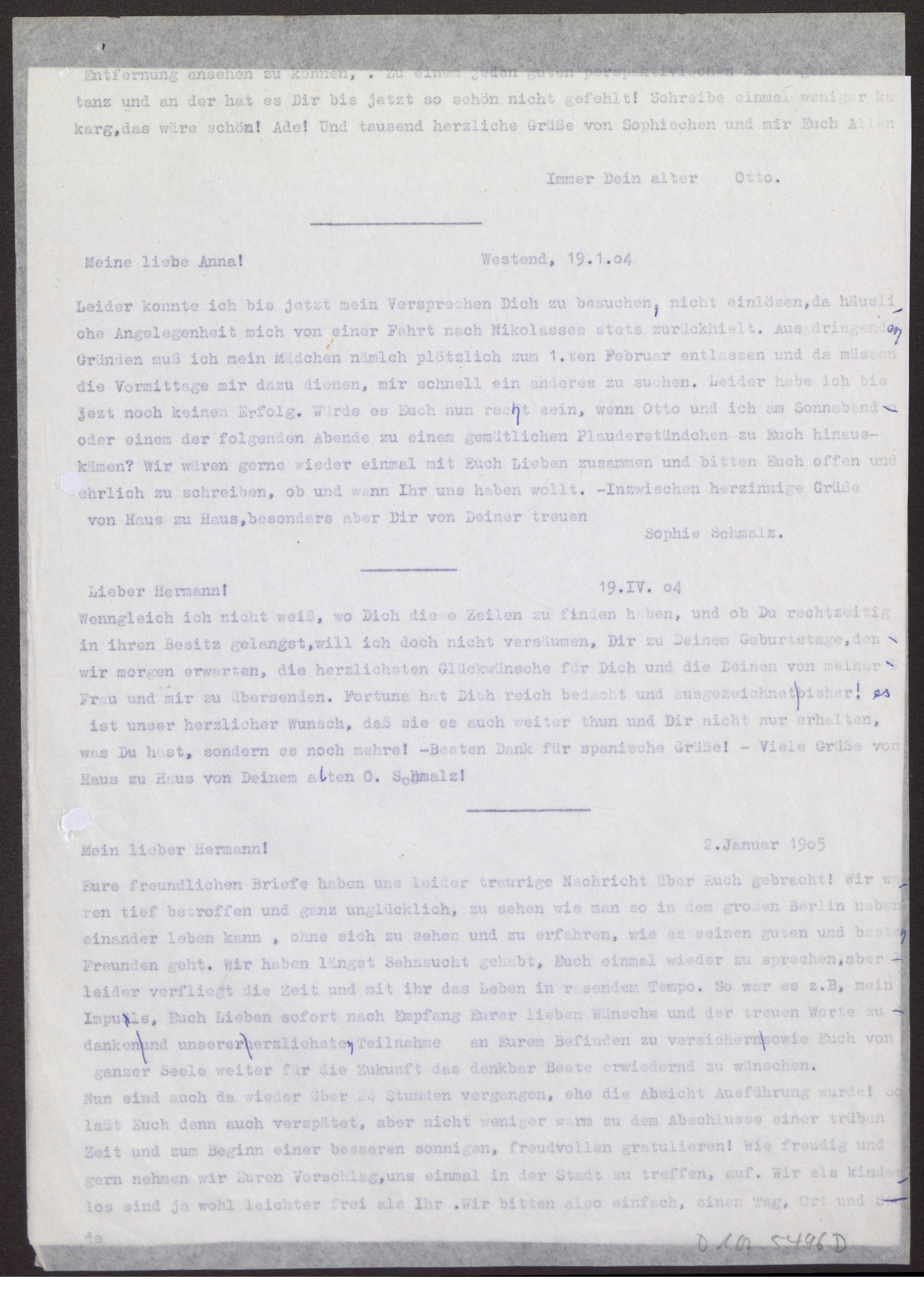 s. Einzelbriefe und Karten Fünf Blätter einseitig beschrieben.