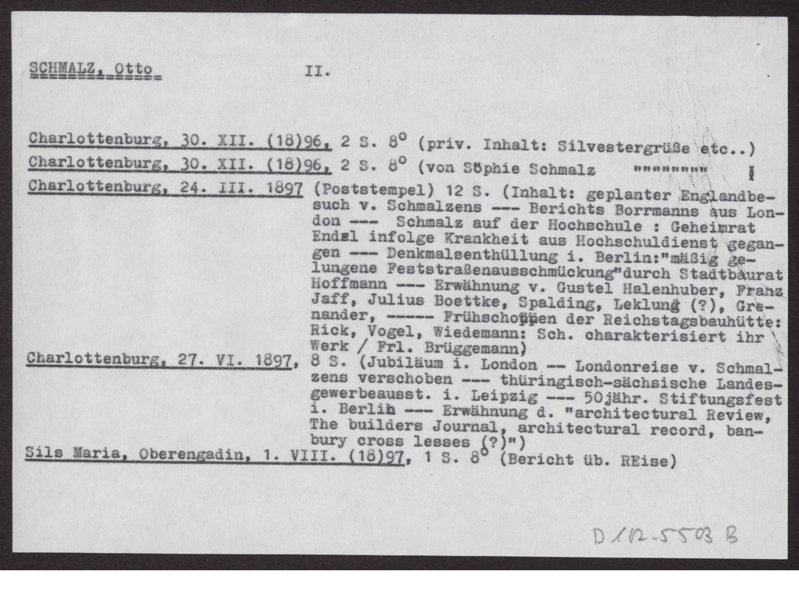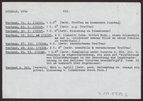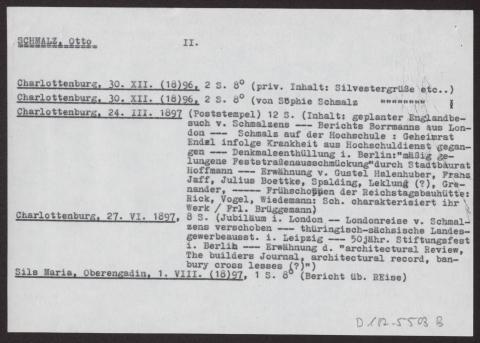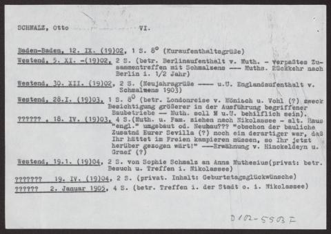 s. Einzelbriefe und Karten Sieben Blätter einseitig beschrieben, dazu ein Notizzettel des Bearbeiters des Nachlasses mit dem Vermerk "Otto Schmalz (mit Vorsicht zu genießen!)