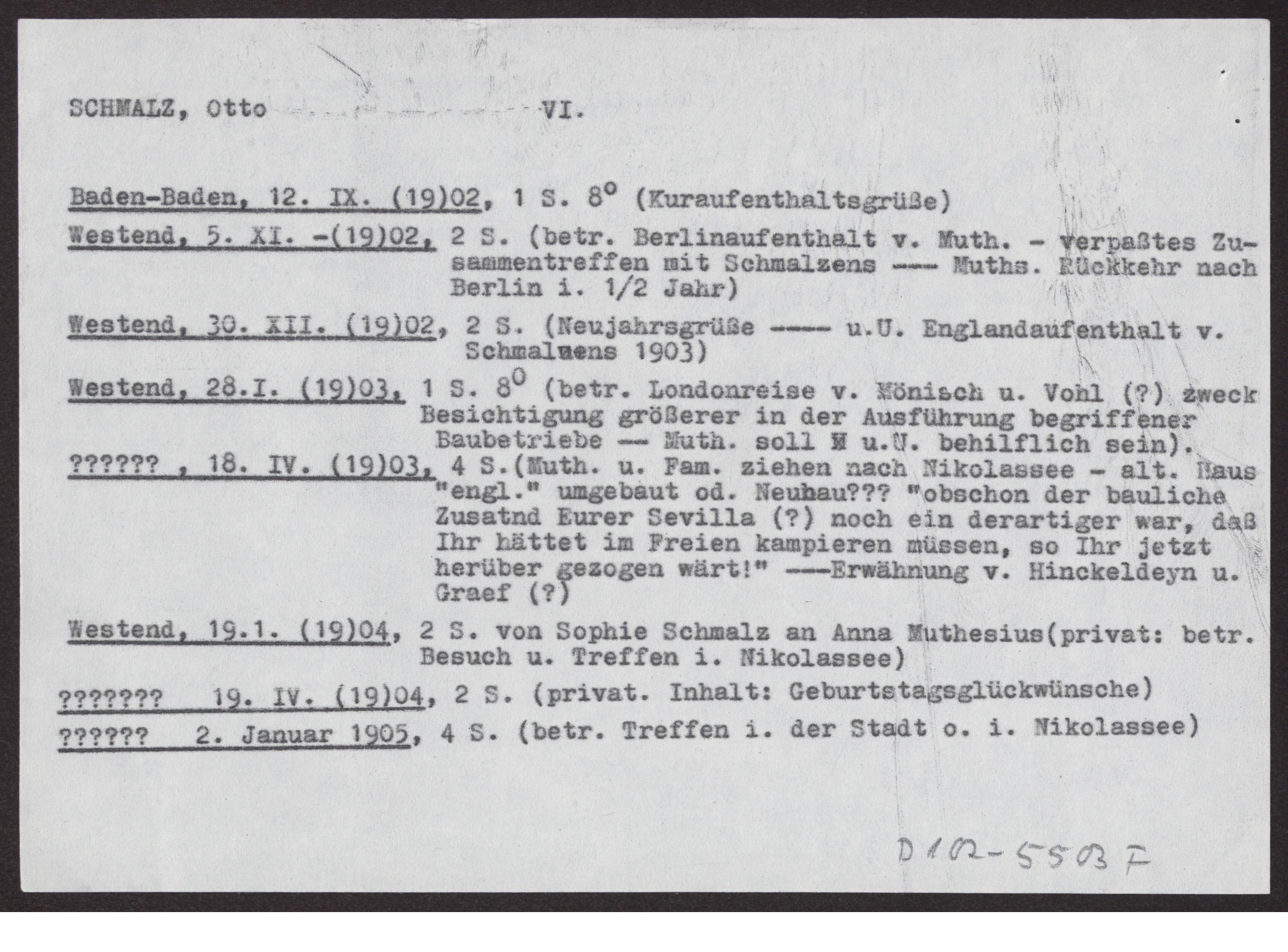 Teilübersetzungen der Briefe zw. Sophie und Otto Schmalz und Hermann Muthesius (Inhalte der Schreiben.)